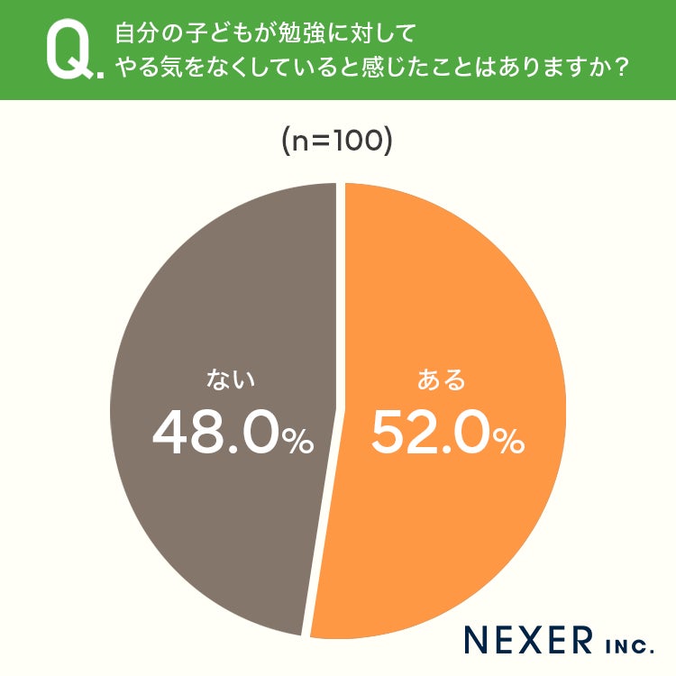 ■52.0%が「子どもが勉強に対してやる気をなくしていると感じたことがある」と回答