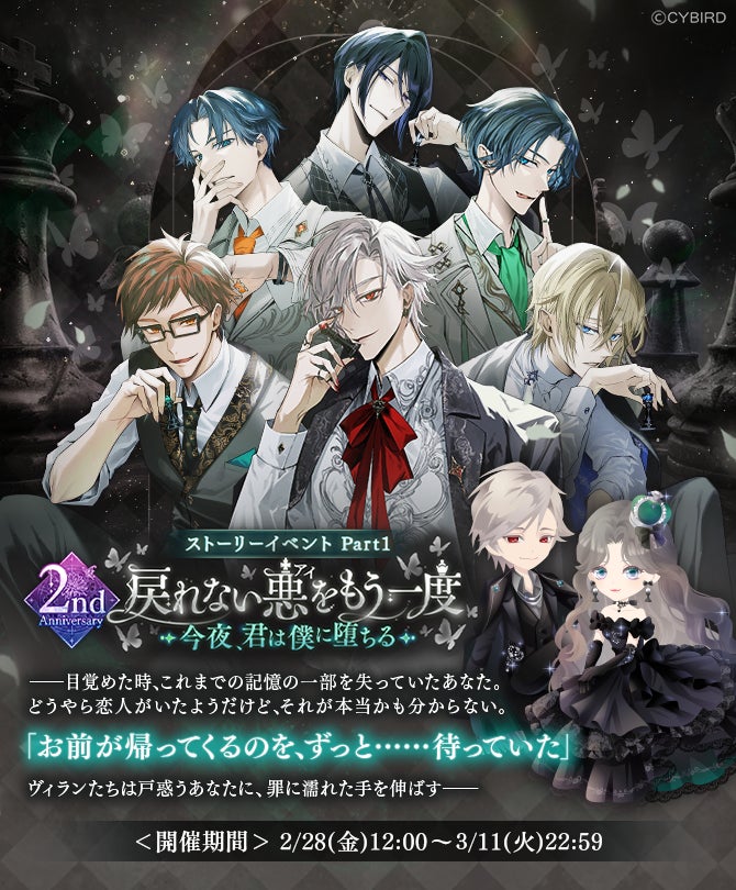 株式会社サイバード(本社:東京都品川区、代表取締役社長 兼 CEO 長嶋 貴之、以下「サイバード」)が手掛ける、全世界でのシリーズ累計会員数4,000万人を誇る女性向け恋愛ゲーム「イケメンシリーズ」の人気作『イケメンヴィラン 闇夜にひらく悪の恋』(以下、『イケメンヴィラン』)は、2025年3月28日(金)でサービス開始より2周年を迎えます。
