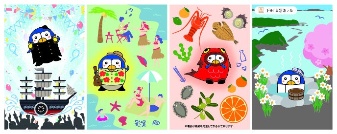 このうち冬の「温泉ぺるりん」は、この包装紙のために新しく誕生した新バージョンですが、今後は下田観光誘客のために、他の施設やイベントでも使用できるフリーデザインとして開放されます。