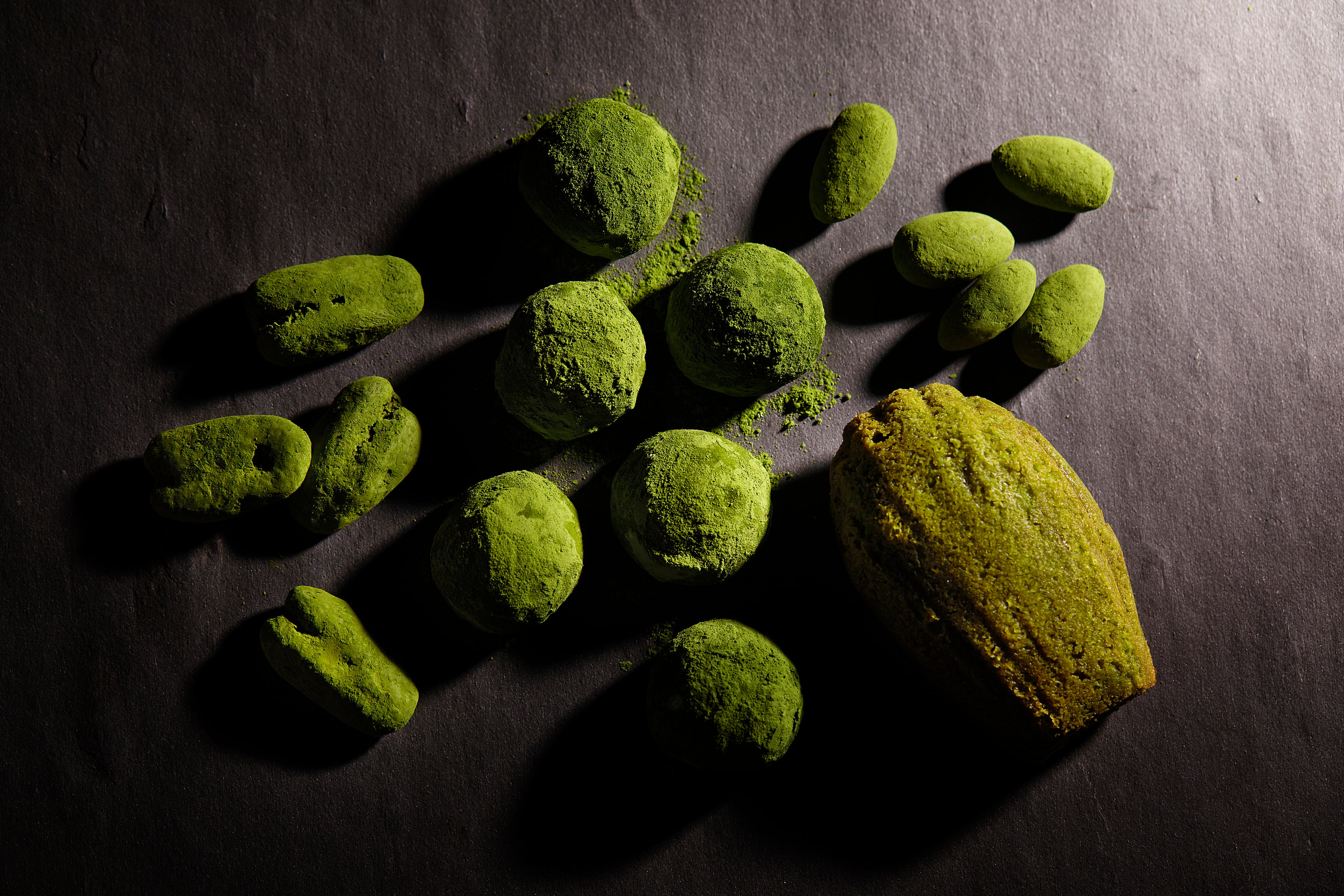 セイボリーでは、香り豊かな抹茶を練り込んだ生地やソースを用い、甘味とのコントラストを意識した4種をご用意します。フォアグラのコクを抹茶のほろ苦さで引き締めた「抹茶でコーティングしたフォアグラガナッシュ」や、ズワイガニとメロンをタルタル仕立てにし、抹茶風味のトルティーヤで包んだ「ズワイガニとメロンの抹茶ロール」など、素材の旨味を引き立てる大人の味わいです。