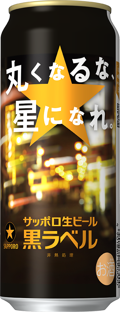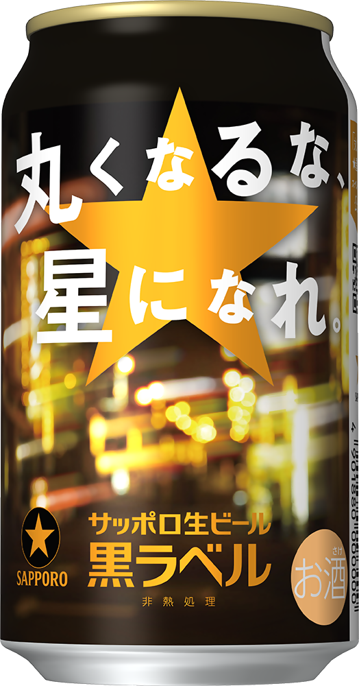 サッポロ生ビール黒ラベル「丸くなるな、☆星になれ。」缶