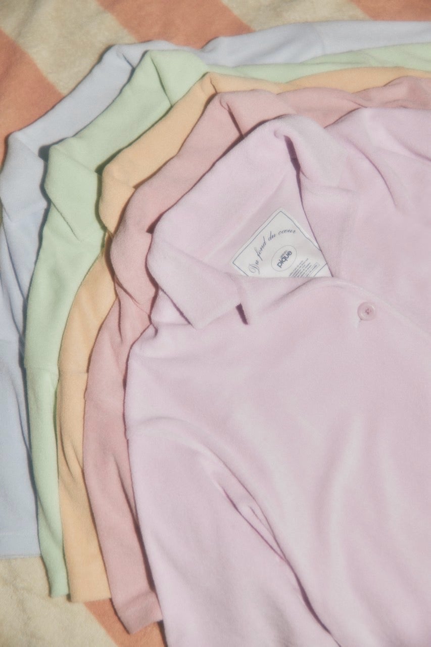 【接触冷感】サマーカラーパイルシャツ&ショートパンツセット