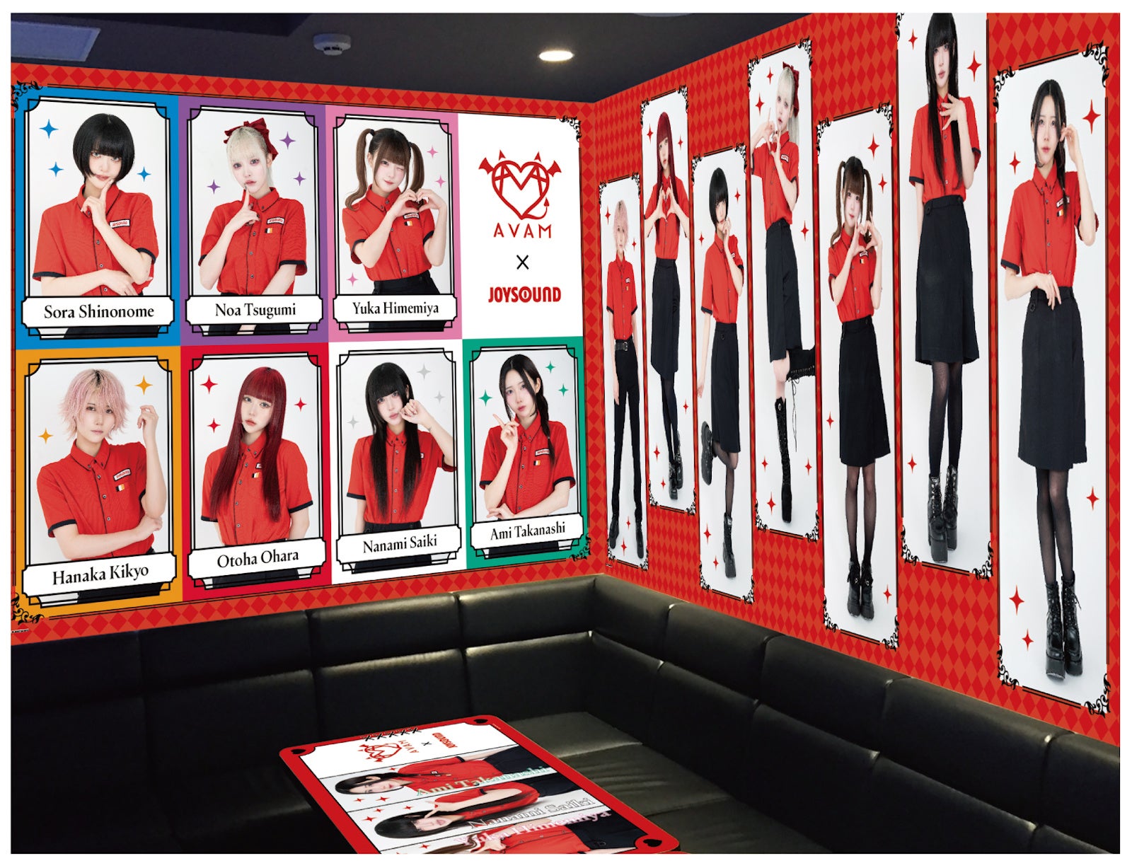 カラオケコラボルームは、ルーム内の壁面やテーブル、ドアに至るまで、「AVAM」の世界観で彩られ、ファンには堪らない空間となっております。
