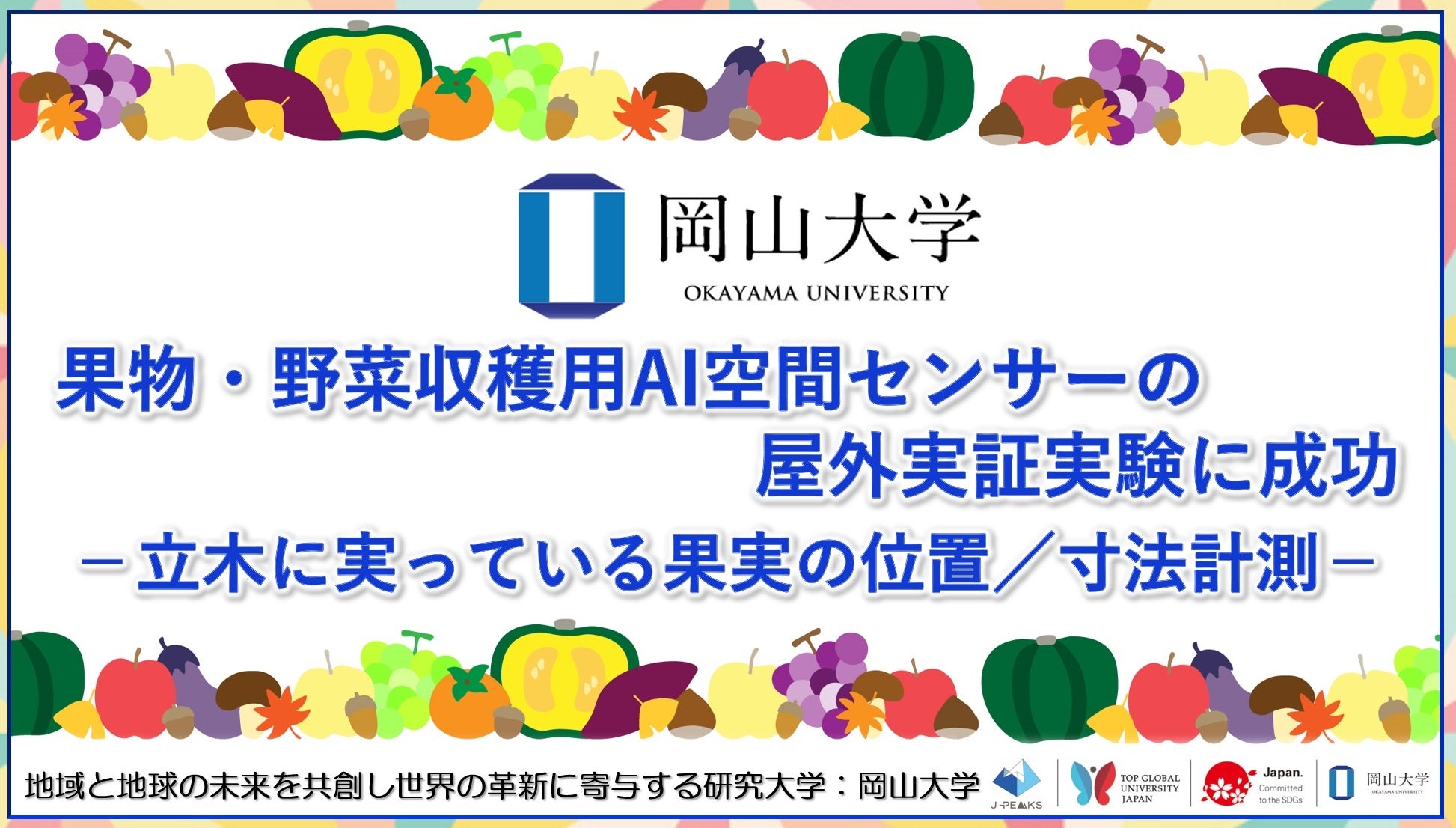 ・【岡山大学】AIを用いた果物・野菜収穫用空間センサーの開発に成功 -照度等の周辺環境の変化に影響されずに位置・寸法計測が可能に-