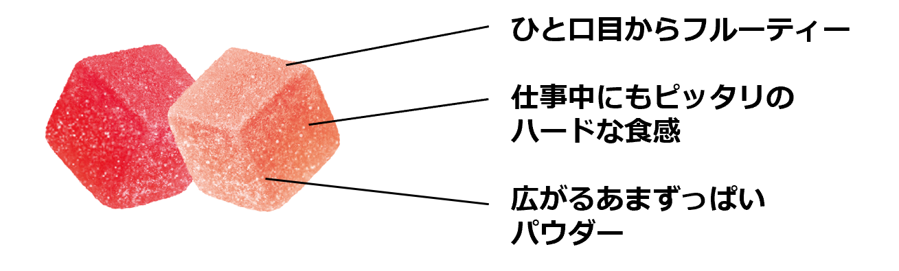 チューインガムの知見を生かし、果実感を存分に楽しめる「絶妙な食感」を追求しました。