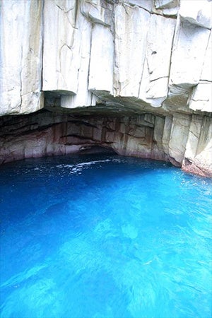 リアス式海岸特有の奇岩、巨岩を見ることができる熊野市の海岸線で出合える大きな洞窟の穴。太陽の位置によって洞窟内の海の色が青やエメラルドグリーンに輝く、青い空と海が一体化した景色が広がります。海上からしか見ることができないため遊覧船に乗れば、洞窟をはじめとする、断崖絶壁や大岩壁などの迫力ある絶景も楽しめます。