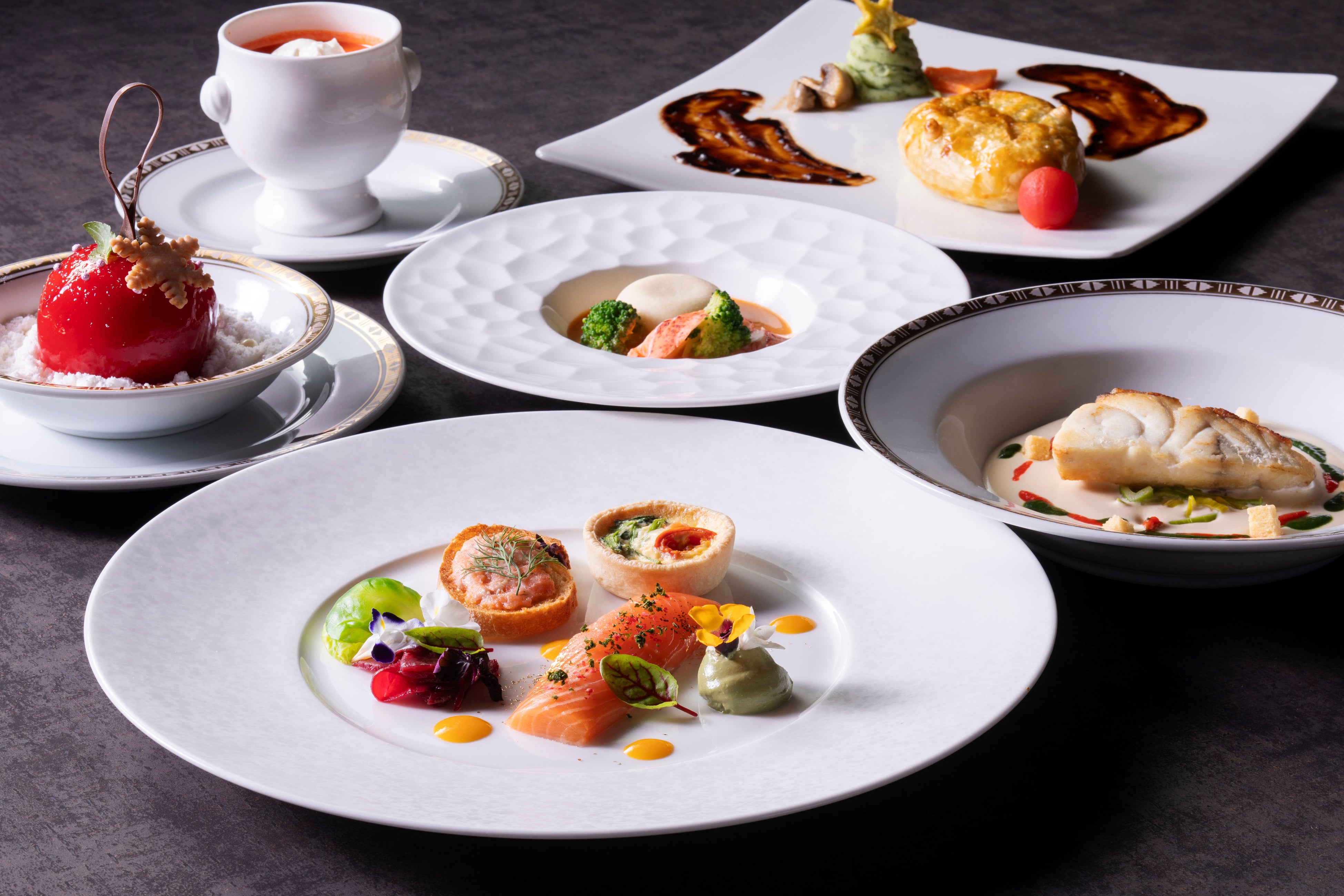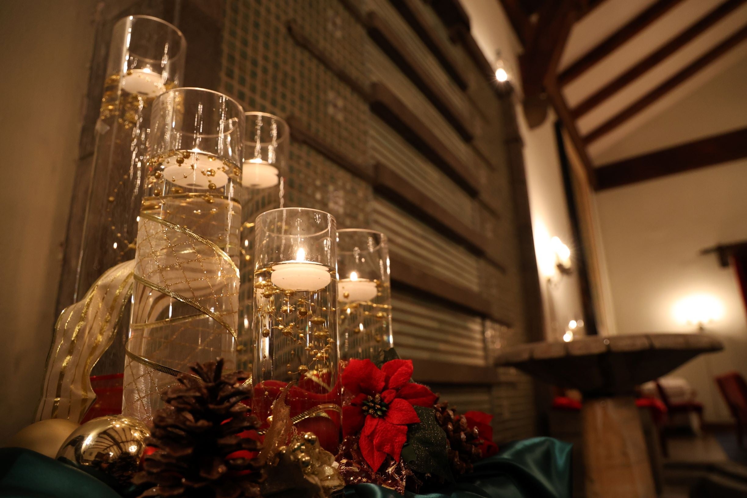 ヨーロッパのお城の中の教会をコンセプトに造られたメインダイニングでは、このクリスマス期間限定の装飾をあしらい、特別なクリスマスディナーを提供いたします。