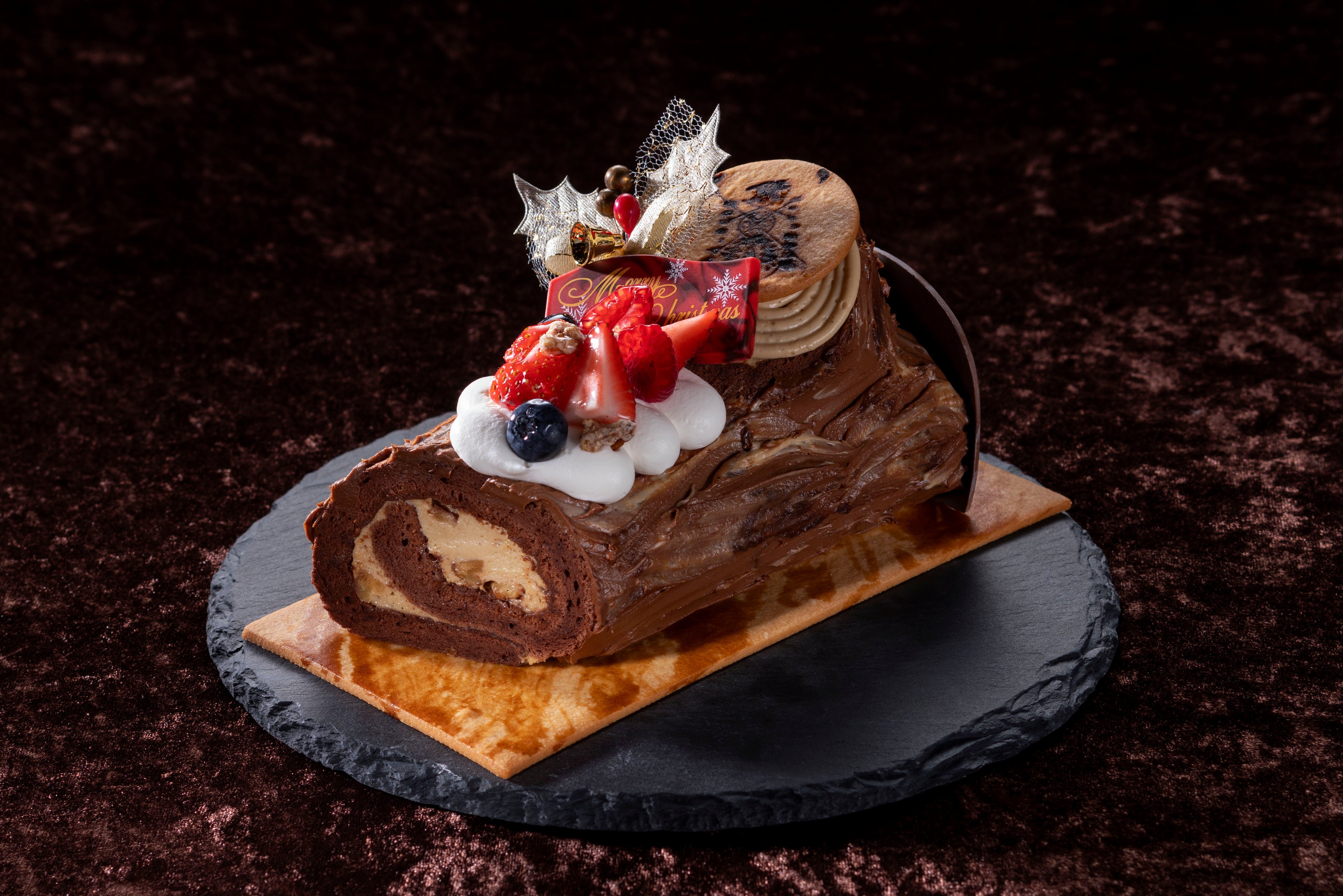 モカクリーム、クルミをふんだんに使い、ショコラスポンジでふんわりと包み込み、濃厚なチョコとモカクリームで切り株に見立てて仕上げた昔ながらのブッシュドノエルを川奈風にアレンジ。聖なる夜に華やかさと優しいアクセントを演出します。