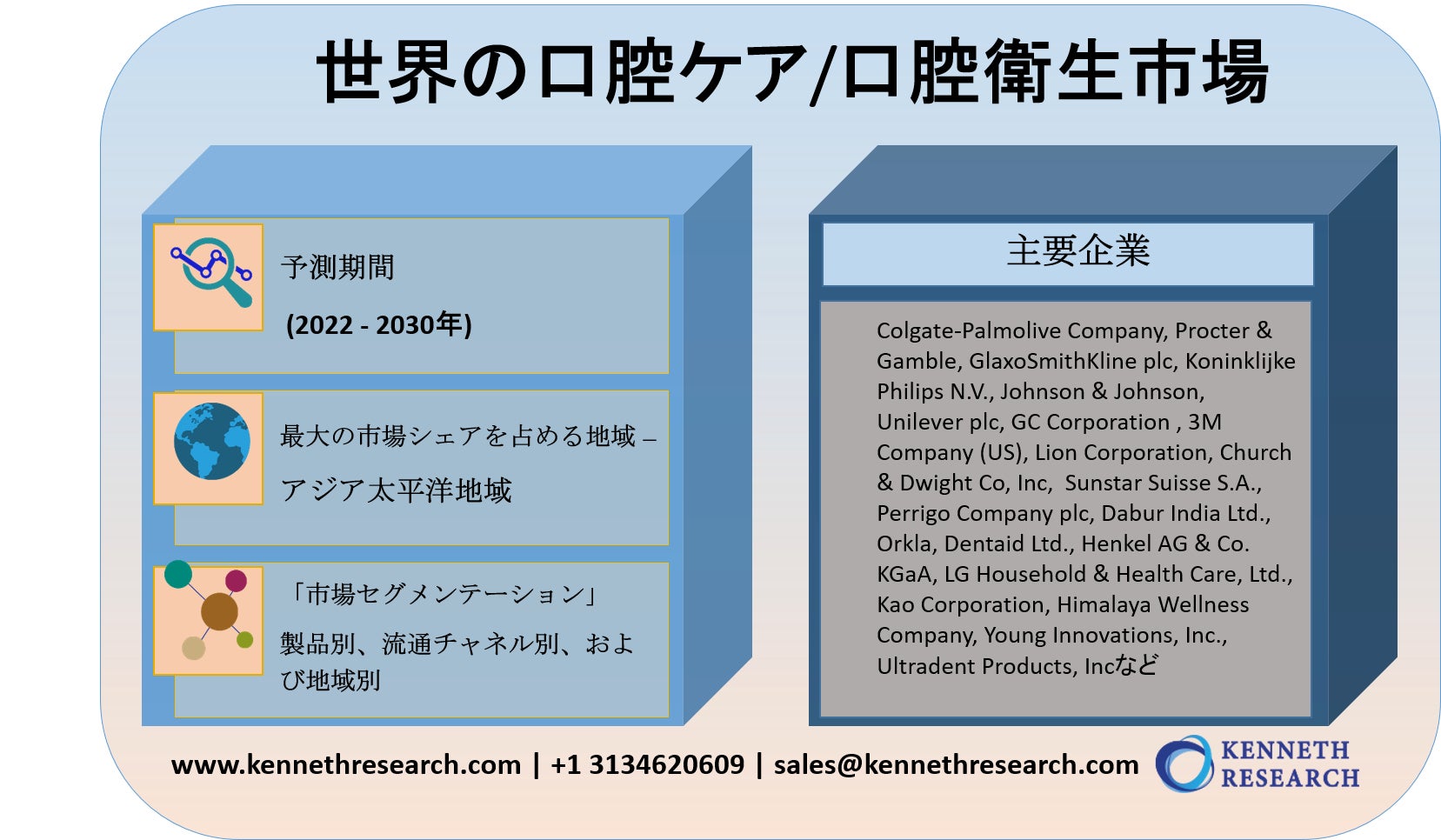 Kenneth Researchは、世界の口腔ケア/口腔衛生市場の予測評価を提供する調査レポートを2021年12月 13日 に発刊しました。これは、世界の口腔ケア/口腔衛生市場の成長ドライバー、市場機会、課題、脅威など、いくつかの主要な市場ダイナミクス強調しています。