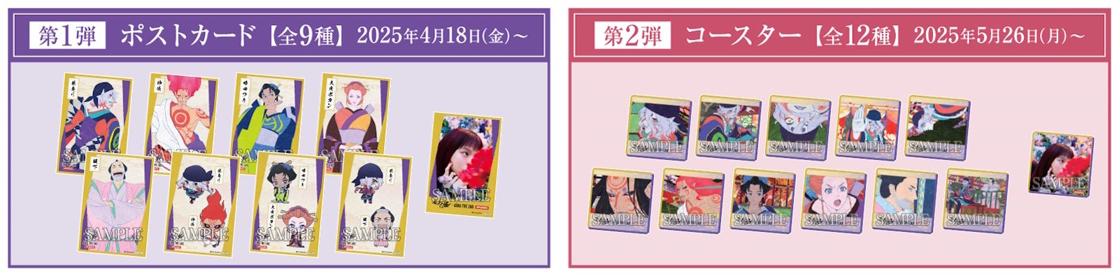 注文特典として、コラボドリンク1品ご注文につき、オリジナルノベルティ【第1弾ポストカード全9種/第2弾コースター全12種】の中からランダムで1枚プレゼントします。