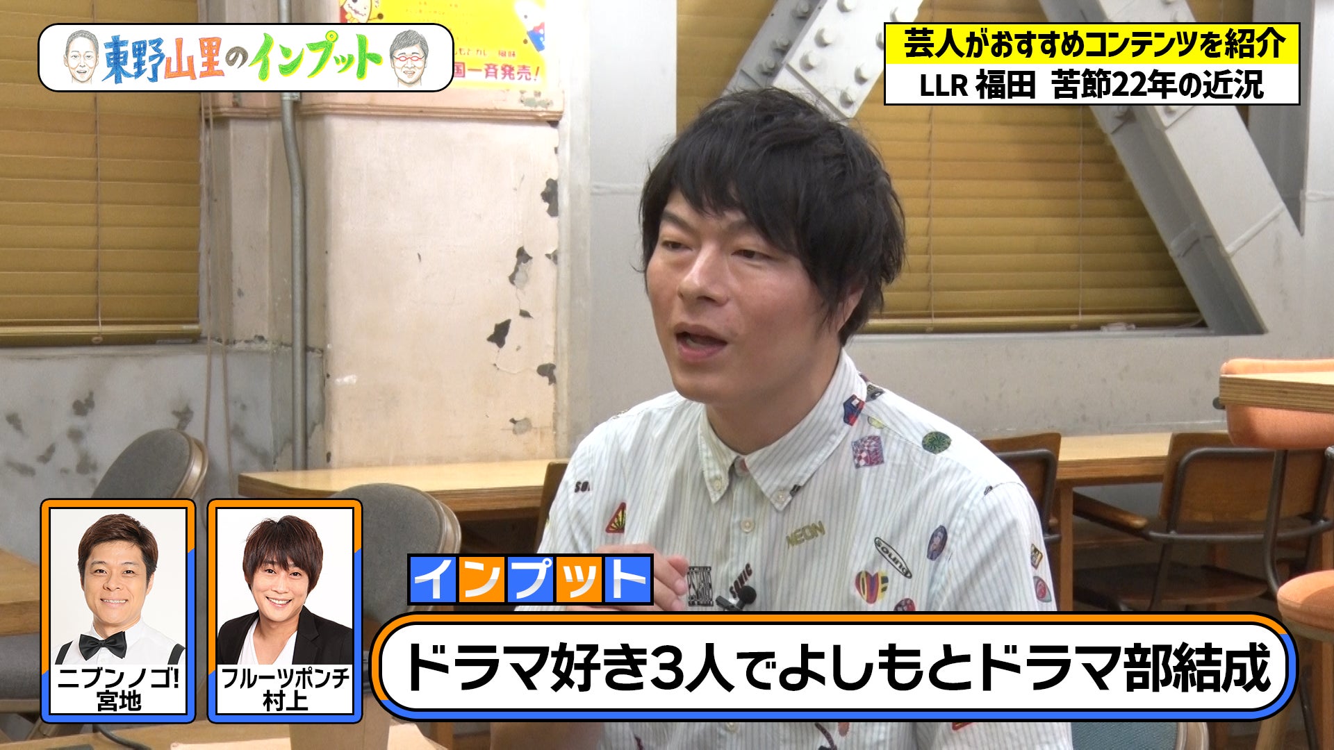 福田は、宮地謙典(ニブンノゴ!)と村上健志(フルーツポンチ)のドラマ大好き芸人3人で「よしもとドラマ部」を結成しており、定期的にドラマ作品について語り尽くすライブを開催していました。