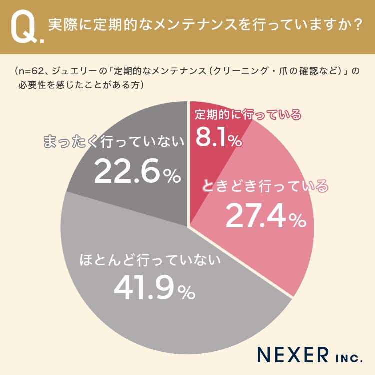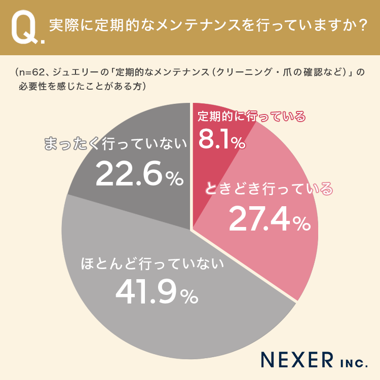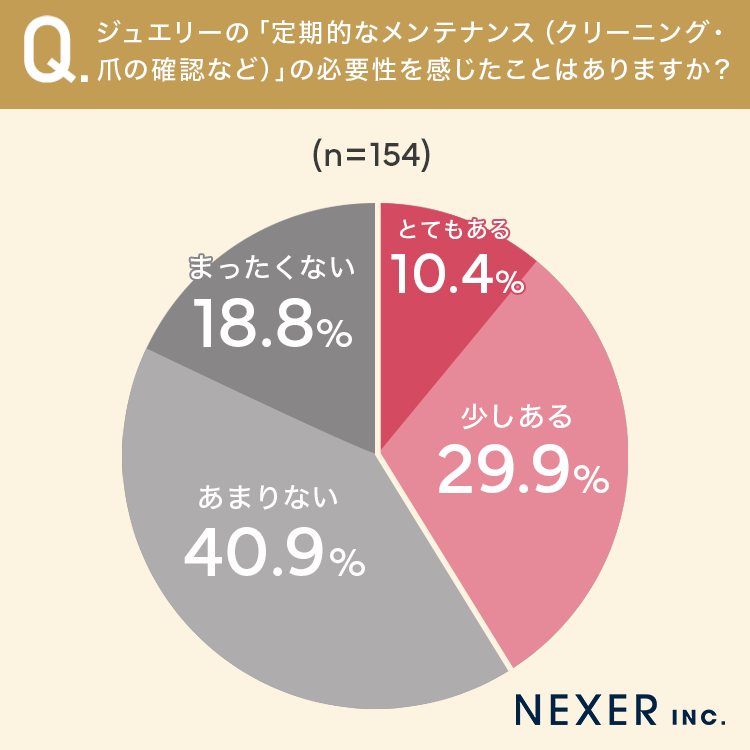 続いて、ジュエリーの「定期的なメンテナンス(クリーニング・爪の確認など)」の必要性を感じたことがあるかを聞いてみました。