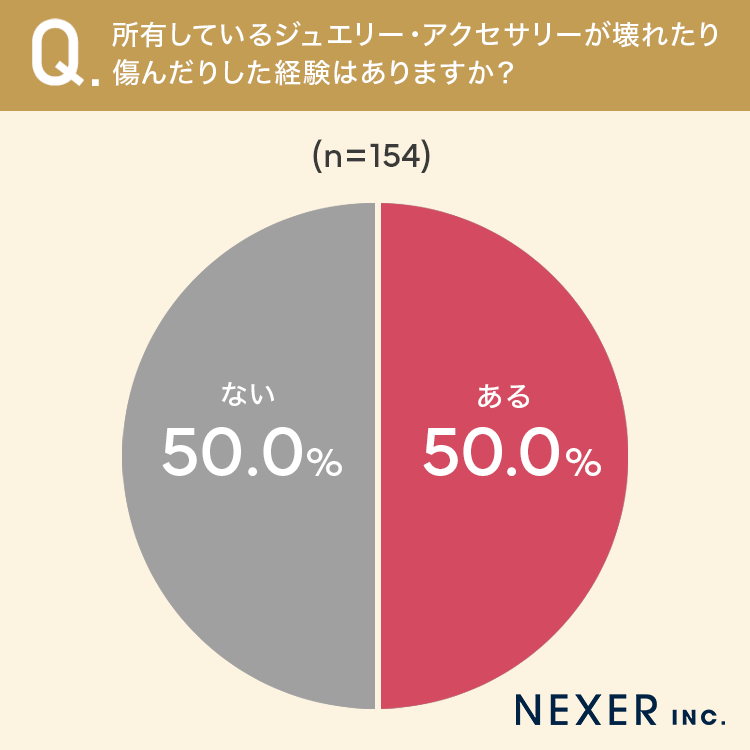 まず、所有しているジュエリー・アクセサリーが壊れたり傷んだりした経験があるかどうかを聞いてみました。