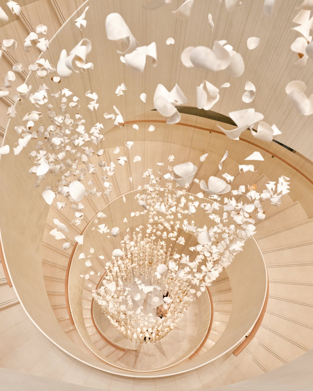 建築家になることを夢見たクリスチャン・ディオールの原点へオマージュを捧げ、「ハウス オブ ディオール 北京」は、ディオールのコードによって引き立てられたユニークな空間を展開します。柔らかな光に包まれた5つのフロアは、壮大な螺旋階段でつながっており、メゾンの世界観が広がっています。