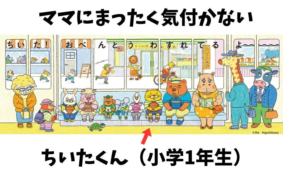 「ちいた! 気付いて! うしろ見て、うしろ!」と思わずつっこみたくなる(笑)。 お弁当を届けるためママが悪戦苦闘する、スーパー追いかけっこ絵本『おべんとう わすれてるよ』が2026年3月5日に発売!
