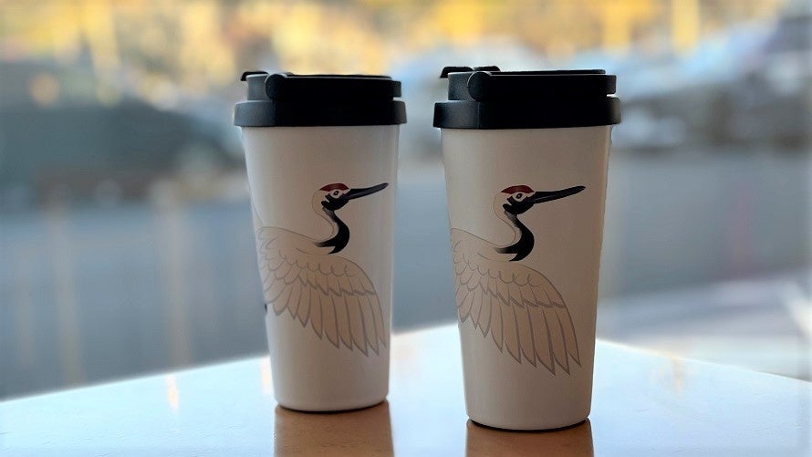 【タンチョウの絵柄が書かれたタンブラー付き】