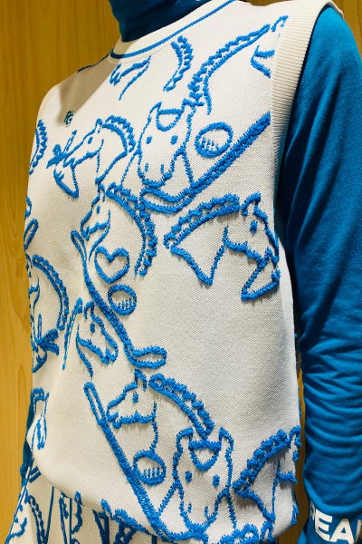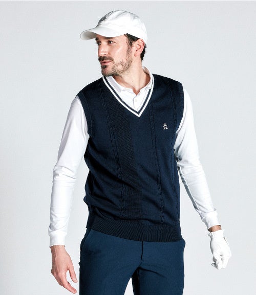 シーアイランドコットンケーブル柄Vネックベスト 税込24,200円