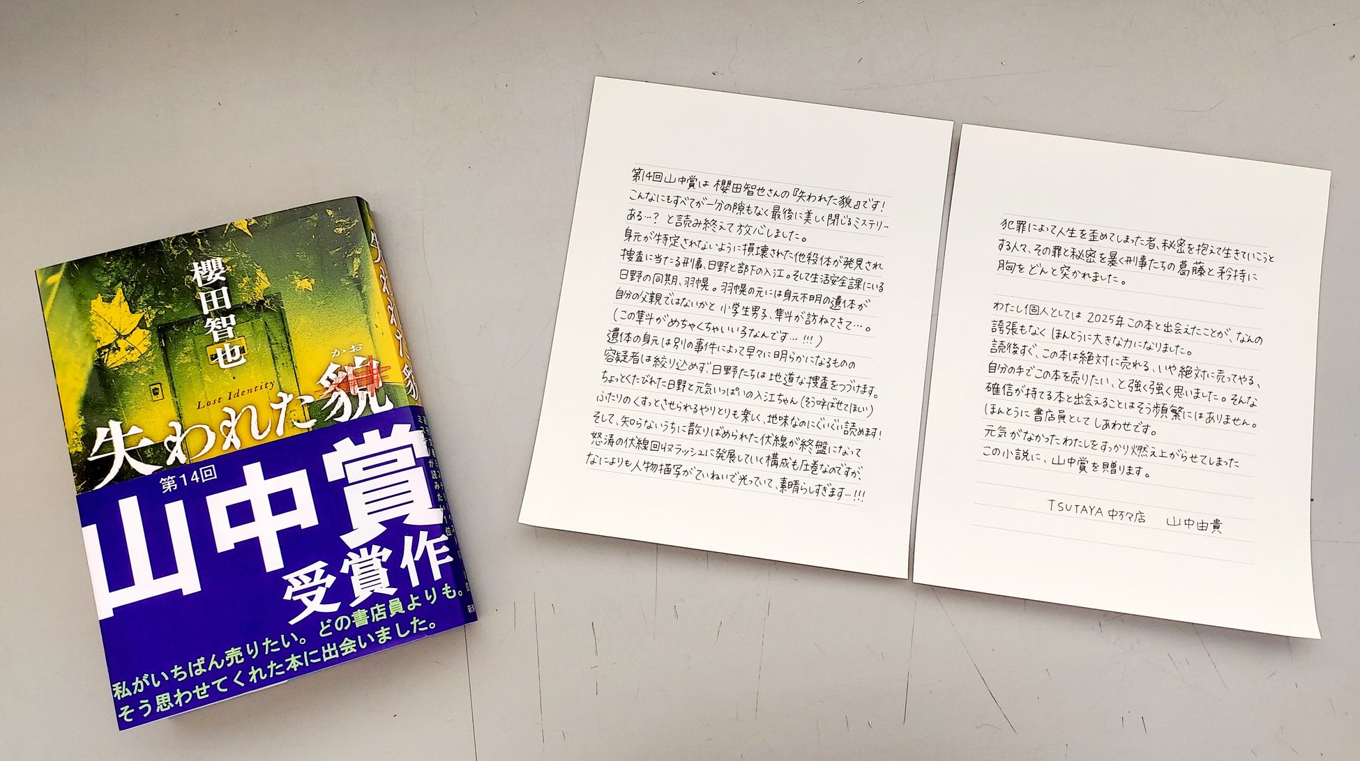 そしてこのたび、TSUTAYA中万々店(高知県高知市)の書店員・山中由貴さんが選ぶ文学賞「第14回山中賞」を受賞しました。