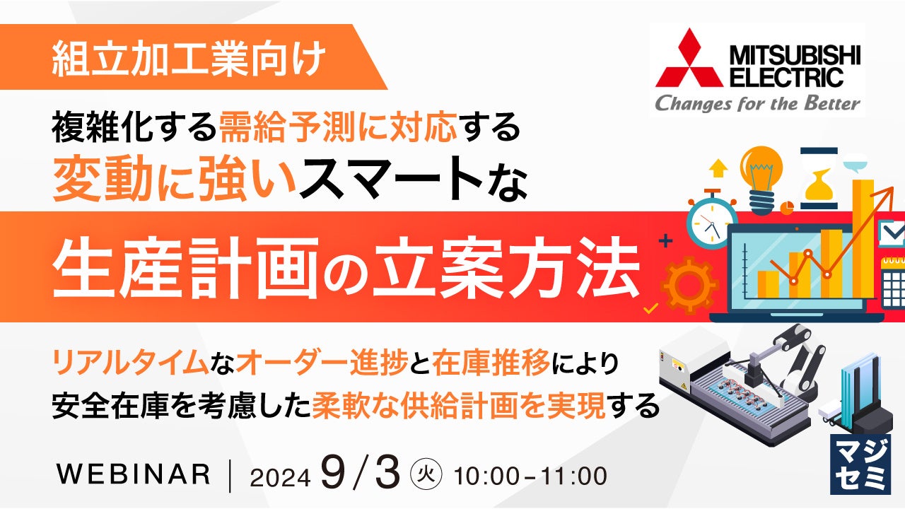 マジセミ株式会社は「(組立加工業向け)複雑化する需給予測に対応する、変動に強いスマートな生産計画の立案方法」というテーマのウェビナーを開催します。