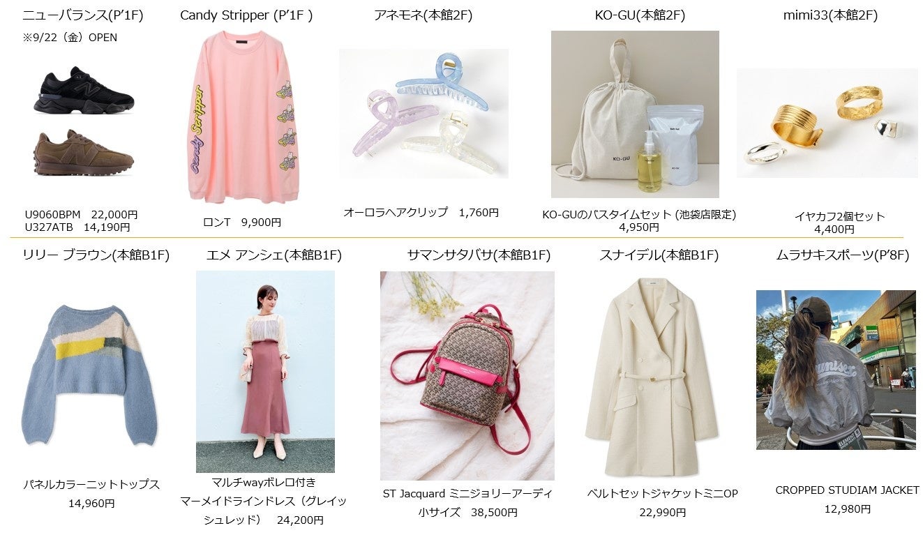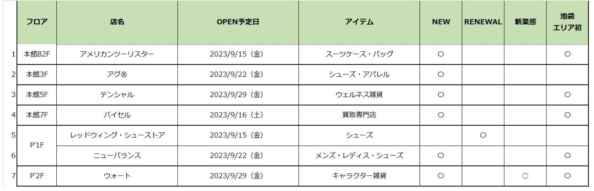 ▼池袋PARCO 2023年秋 NEW&RENEWAL SHOP一覧