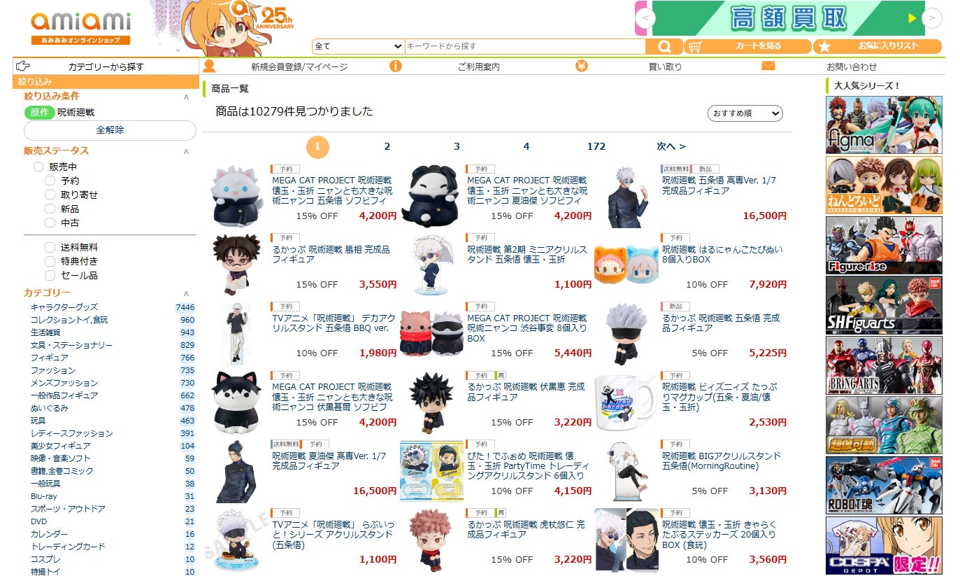 ホビー通販大手の「あみあみ」(運営:大網株式会社、東京都文京区)は、メーカー「メガハウス」より、『MEGA CAT PROJECT 呪術廻戦 懐玉・玉折 ニャンとも大きな呪術ニャンコ ソフビフィギュア』の「五条悟」「夏油傑」「伏黒甚爾」を現在、それぞれご案内中です。