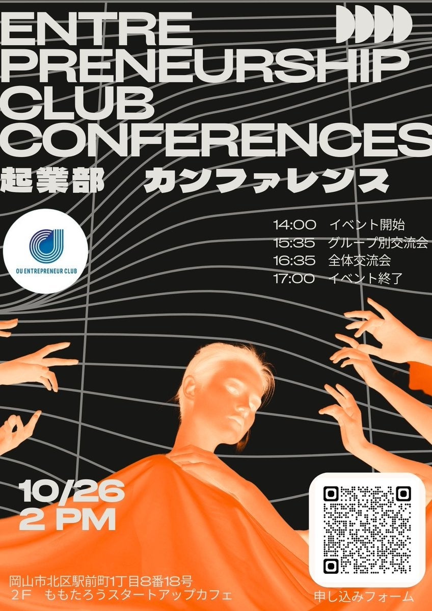 国立大学法人岡山大学(本部:岡山市北区、学長:那須保友)の岡大起業部は、2024年10月26日(土)14:00~17:00に、ももたろうスタートアップカフェにおいて「起業部カンファレンス」を開催します。