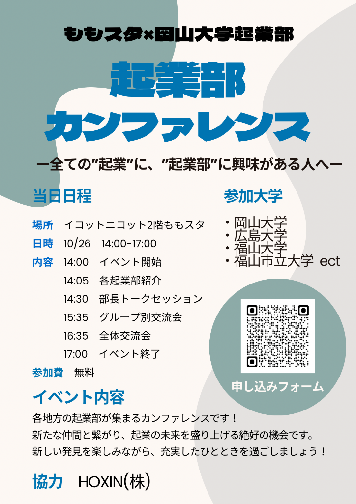 【岡山大学】岡山大学起業部主催「起業部カンファレンス」〔10/26,土 ももたろうスタートアップカフェ〕