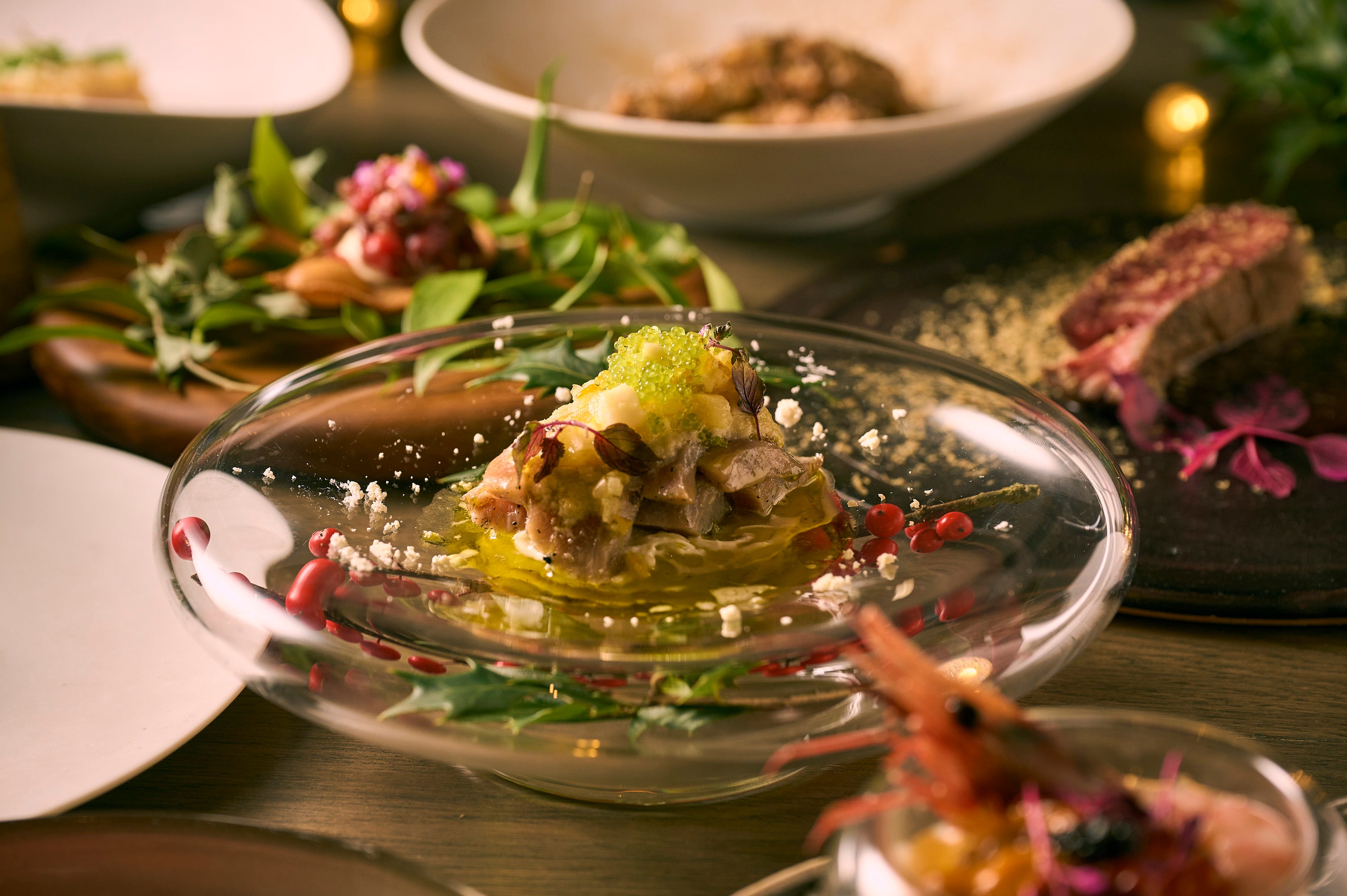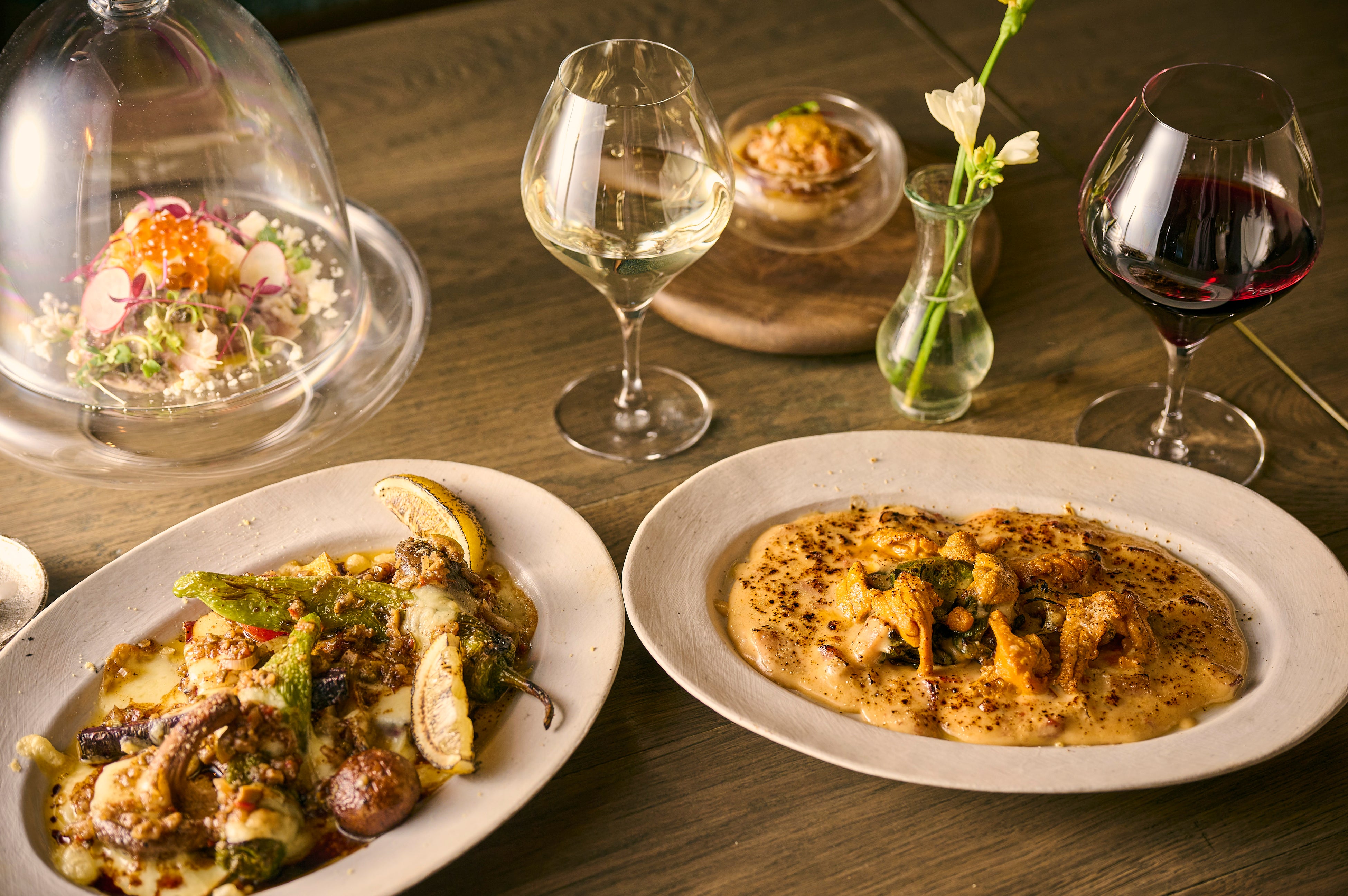 薪火調理で丁寧に焼き上げた食材を主役に、旬の食材を用い、フレンチやイタリアンの要素を取り入れて仕上げるビストロ料理をご堪能いただけます。