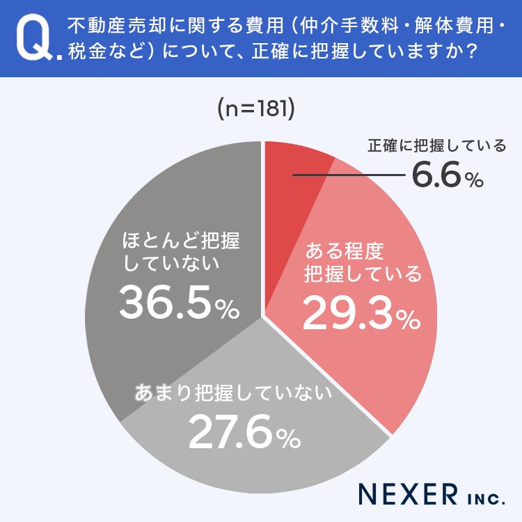 まず、不動産売却に関する費用(仲介手数料・解体費用・税金など)を、正確に把握しているかどうかを聞いてみました。