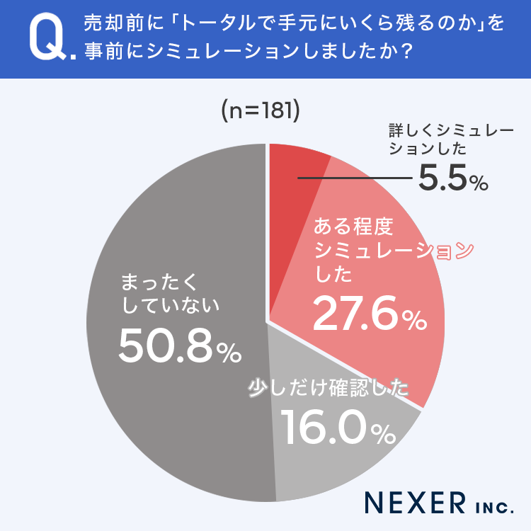 続いて、売却前に「トータルで手元にいくら残るのか」を事前にシミュレーションしたかどうかについて聞いてみました。