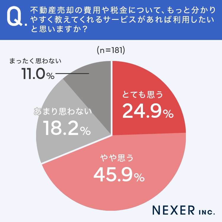 費用の全体像がつかめないことが、売却そのものへのハードルになっていることがうかがえる結果となりました。