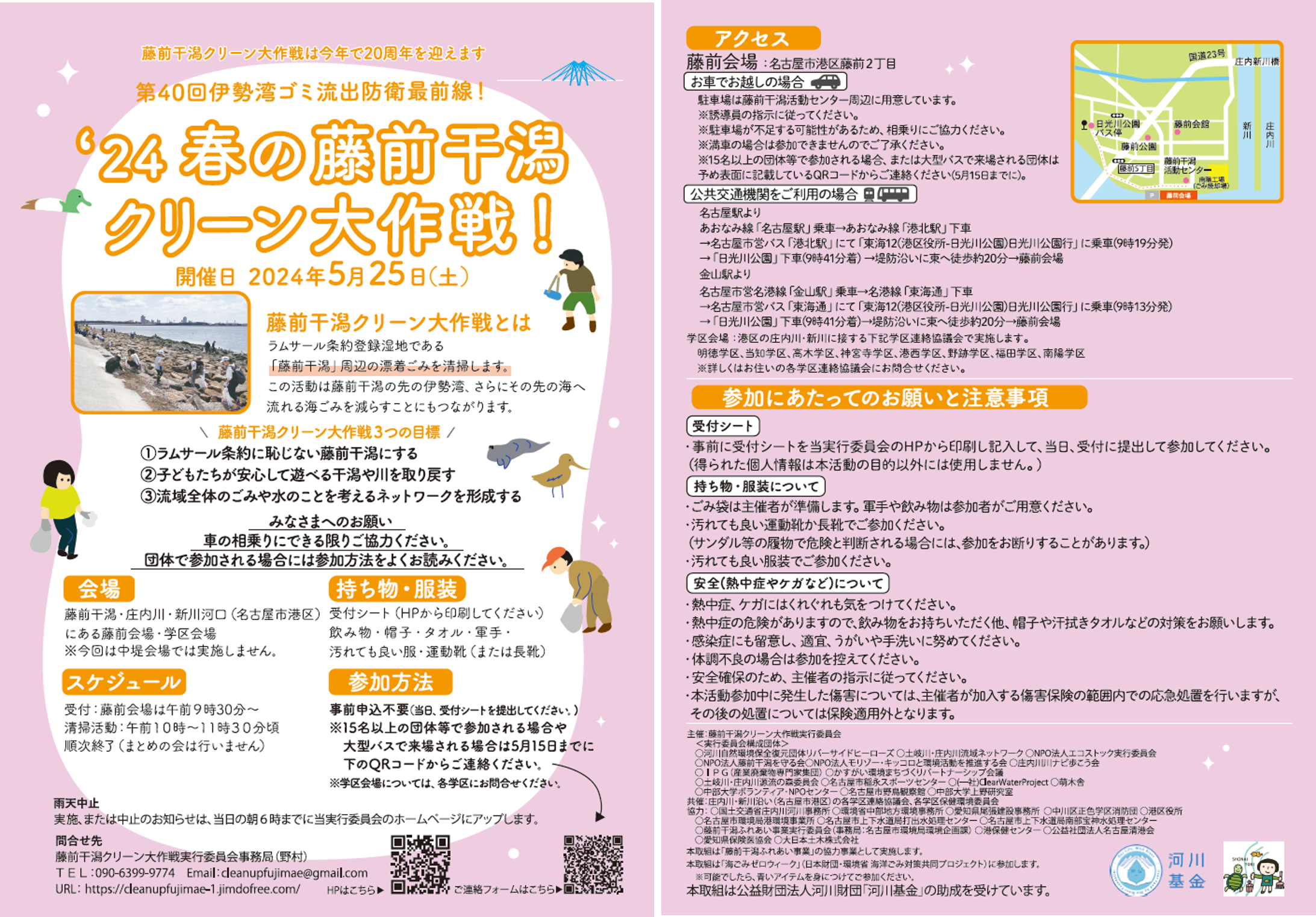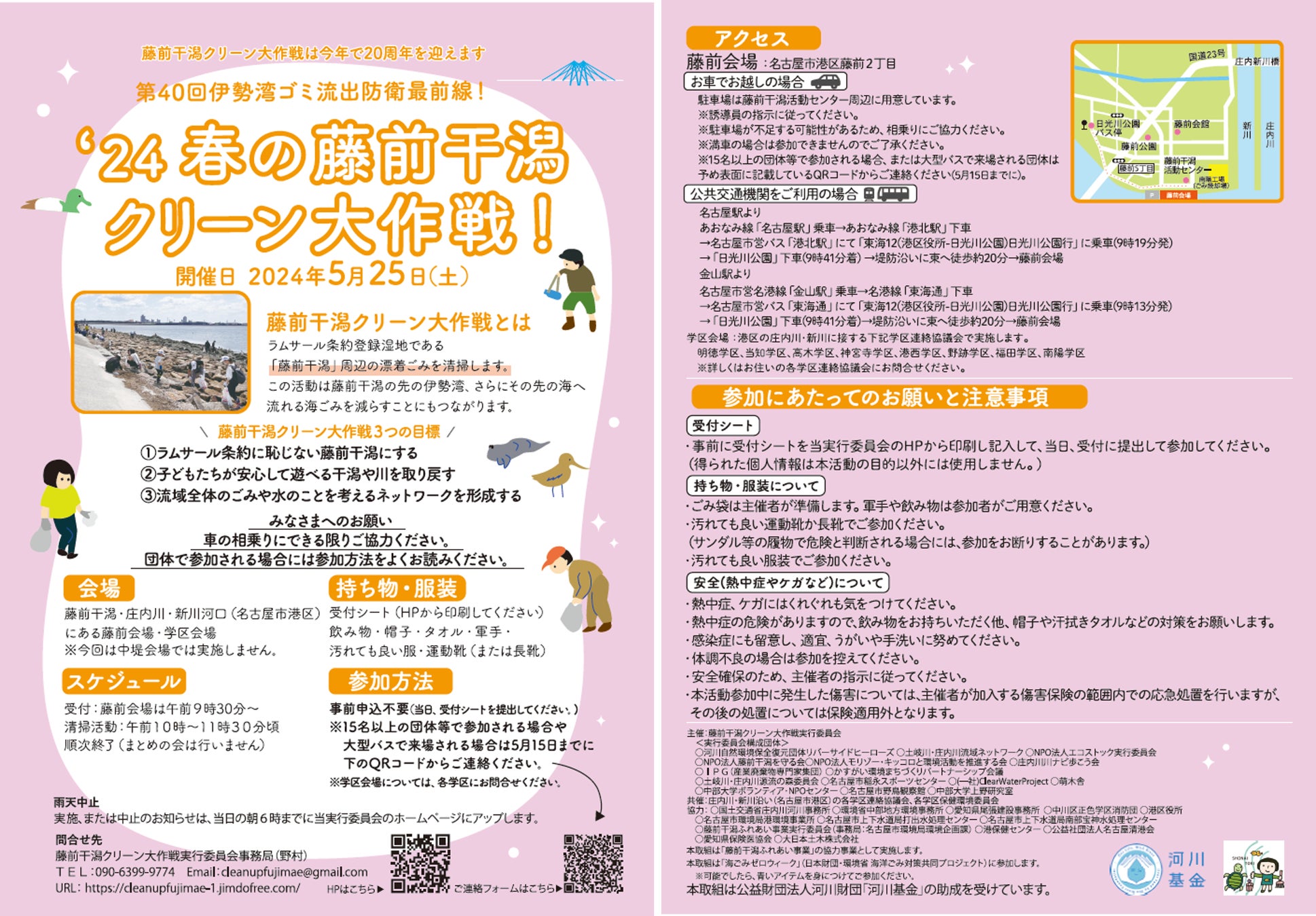 この活動は藤前干潟の先の伊勢湾、さらにその先の海へ流れる海洋ごみを減らすことにもつながります。お子様連れも大歓迎です!今回もたくさんの参加・協力をお待ちしております。