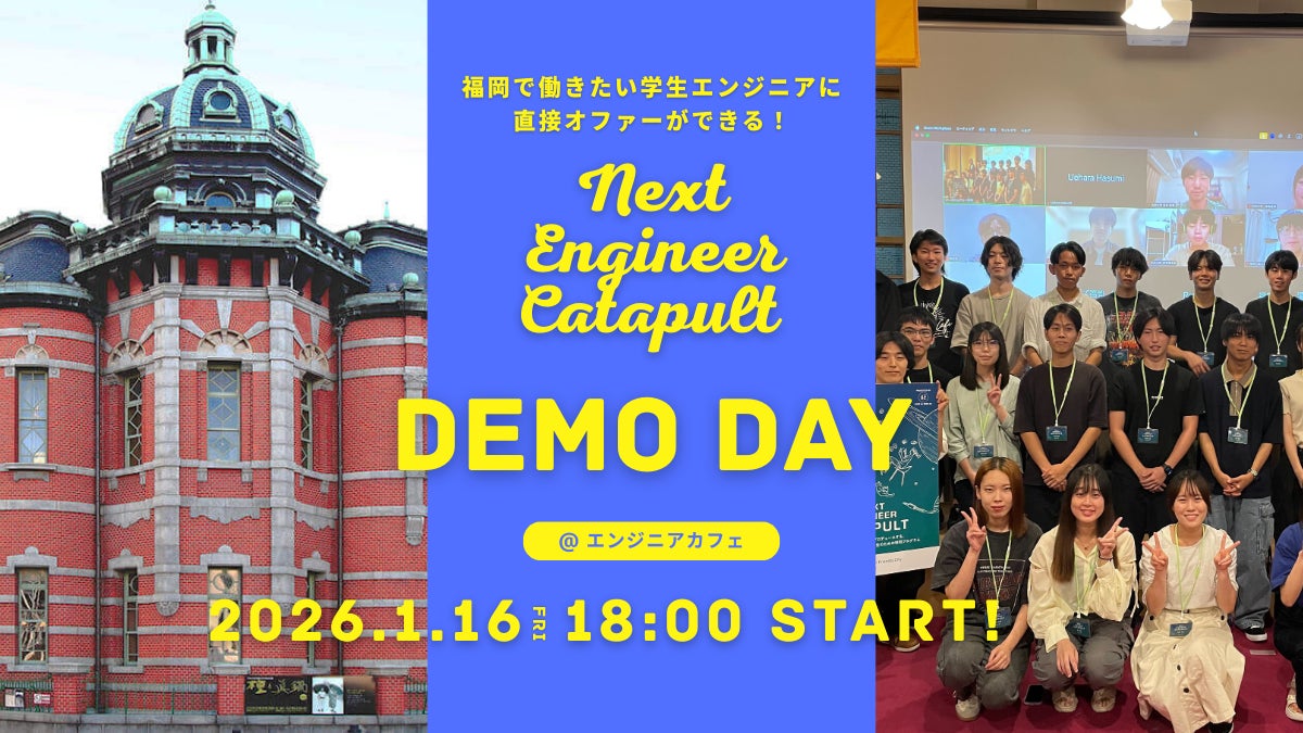 IT関連及びデジタルコンテンツの人材養成スクール・大学・大学院を展開するデジタルハリウッド株式会社(本社:東京都千代田区、代表取締役社長兼CEO:春名 啓紀、学長:杉山 知之)が運営する、エンジニアと起業の学校『G's』(ジーズ)は、福岡市より委託を受け運営するデジタル人材育成事業「ネクストエンジニア・カタパルト」の最終成果発表会「DEMO DAY」を、2026年1月16日(金)に開催します。