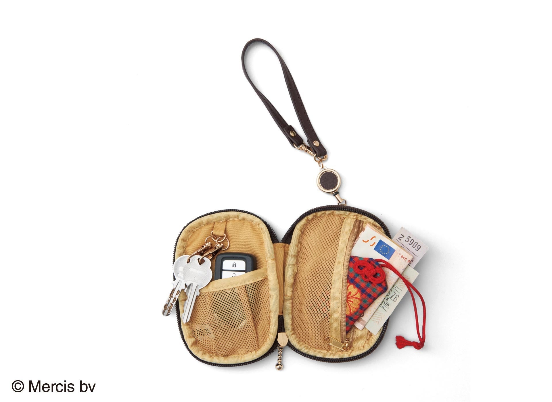 家、車、自転車など、形も用途も違うかぎをまとめて収納できるミニウォレットです。