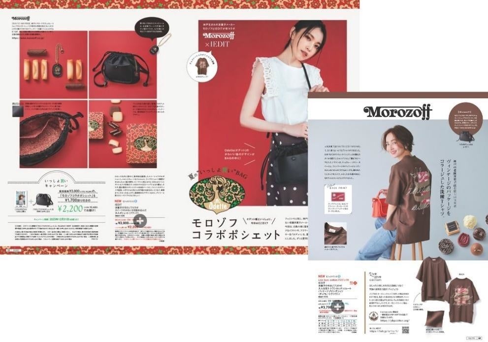 フェリシモが展開する、ファッションブランド、「IEDIT [イディット]」と老舗洋菓子メーカー「モロゾフ」のコラボシリーズが登場、6月8日よりウェブ販売を行っています。新作は、モロゾフのロングセラー商品であるクッキー缶とオデットシリーズを楽しめる「ポシェット」、チョコレートをテーマにした「Tシャツ」の2アイテムです。「ポシェット」は特別価格で購入できる「いっしょ買いキャンペーン」、「Tシャツ」も対象商品から3点以上お申し込みいただくと特別価格で購入できる「まとめ買い」キャンペーンを開催中です。新作はウェブ特集ページのほか、デジタルカタログでもチェックできます。