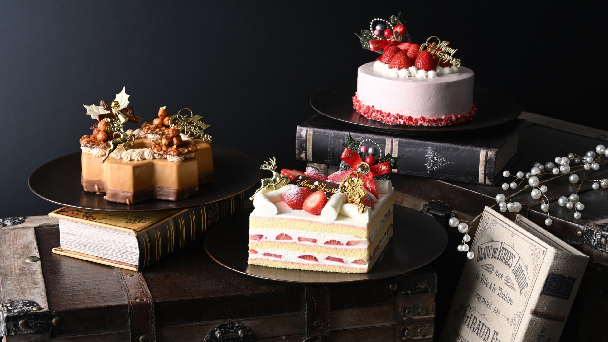 ホテルパティシエが手掛けるクリスマスケーキを3種類ご用意しております。ベーシックな「シャンティ・フレーズ・ノエル」、ナッツとチョコレートが香る「ノエル・ショコラ・プラリネ」、7大アレルゲンを使用していない「ノエル・エブリワン」から、お召しあがりいただくシーンに合わせてお選びいただけます。