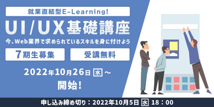 クリーク・アンド・リバー社(C&R社)は、Webディレクターやプランナー、マーケッター、Webデザイナー、コーダーなど、Web業界で働く方々を対象に、10月26日(水)にスタートする無料eラーニング講座「UI/UX基礎講座 Vol.1 ~今、Web業界で求められているスキルを身に付けよう~」(全8回)の7期生を募集いたします。