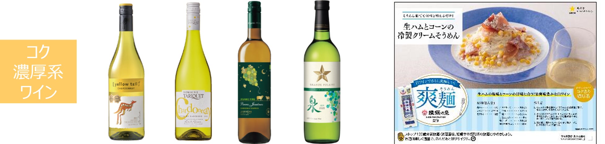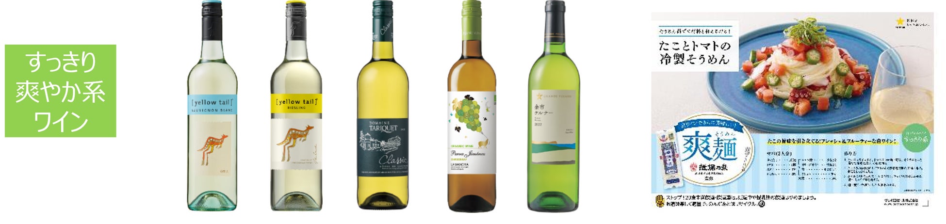 また近年、夏の白ワイントレンドが上昇傾向にあります。そこで、夏の食卓をよりお楽しみいただける当社の白ワインと揖保乃糸監修の冷たいそうめんのアレンジレシピを提案しています。