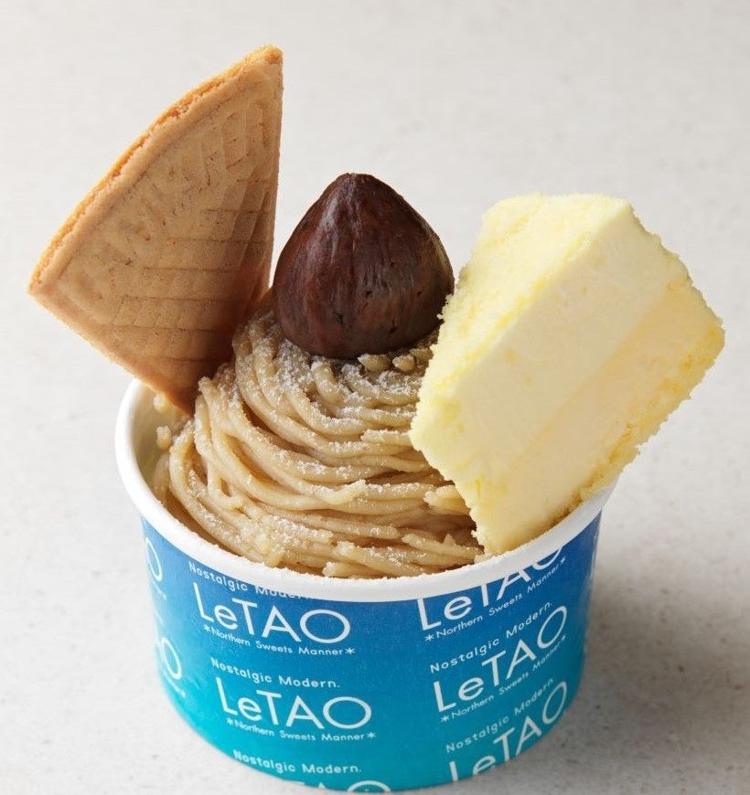 コクのあるジャージーミルクのソフトクリームに、濃厚な和栗のモンブランクリームを絞り出して、渋皮栗をトッピング。神戸阪急だけでしか味わえないルタオサンデーです。