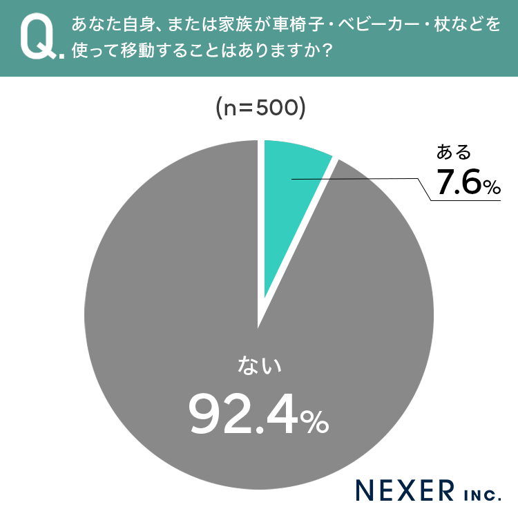 ■7.6%が「自分や家族が車椅子・ベビーカー・杖などを使って移動することがある」と回答