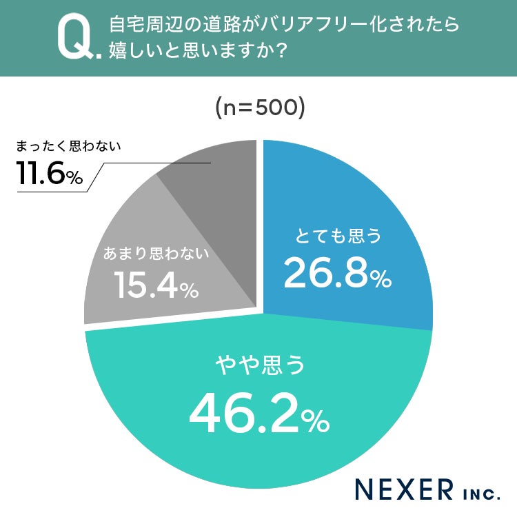 続いて、自宅周辺の道路がバリアフリー化されたら嬉しいと思うかを聞いてみました。