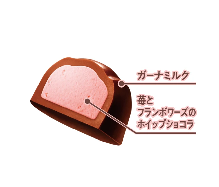 ふんわり軽やかなチョコレートをガーナミルクで包み込んだ、春夏にぴったりの一粒です。
