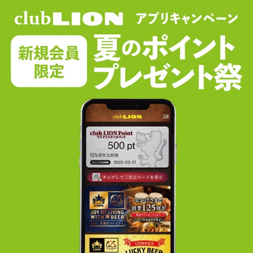 『笑顔の夏祭』期間中に公式アプリ「club LION アプリ」をダウンロード&新規会員登録していただいたお客様へ、登録翌日に「club LION ポイント」500ポイントをプレゼントいたします。