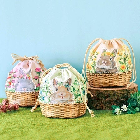 花かごからうさぎがぴょこっと会いにきた「うさぎの巾着ポーチ」が、フェリシモ「YOU+MORE!」から誕生