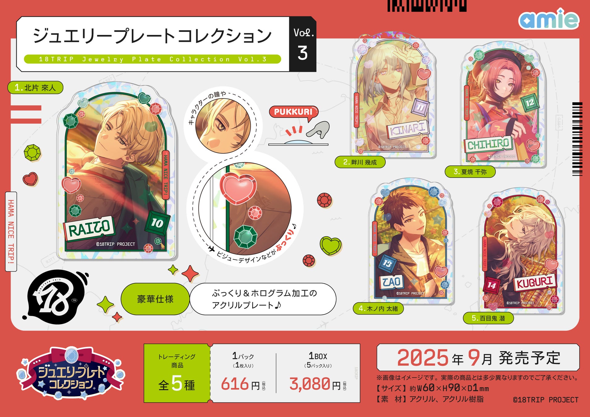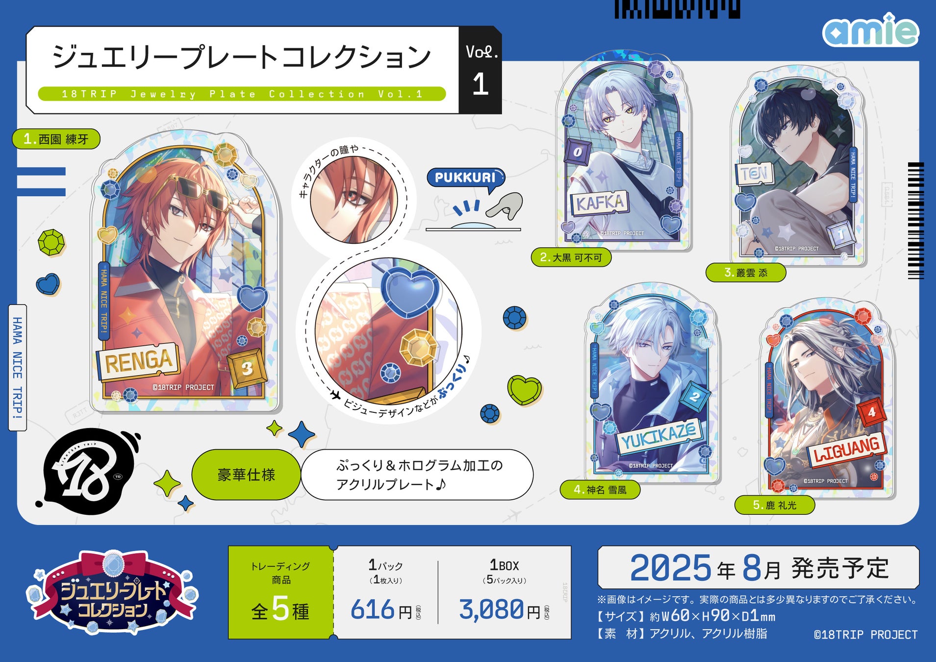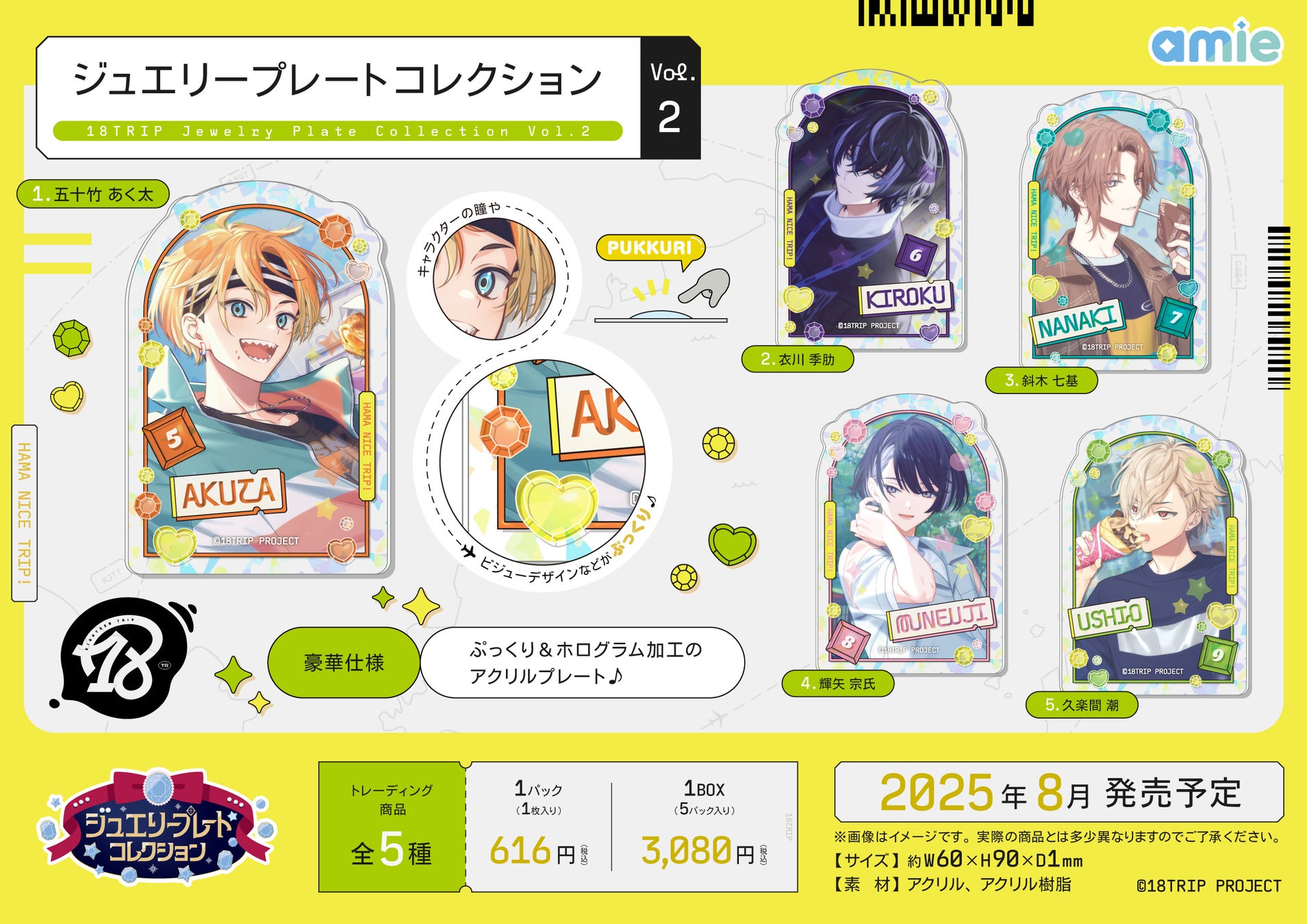 フィギュア&ホビー通販大手の「あみあみ」を運営する大網株式会社(本社・東京都文京区)は、自社が展開するグッズブランド「amie(アミィ)」から『18TRIP』の「フレフレスケルトンうちわDX Vol.1/Vol.2」「ジュエリープレートコレクション Vol.1~4」を現在、ご案内中です。