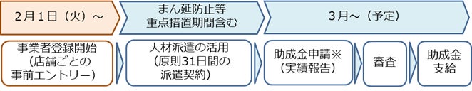 2/1(火)より、「エッセンシャルワーカーに係る緊急人材確保サポート事業助成金事務局」にて登録を受け付けます。登録にあたっては、募集要項を確認の上、事前エントリーシートにて企業情報等の入力や確認事項へのチェック等をお願いします。