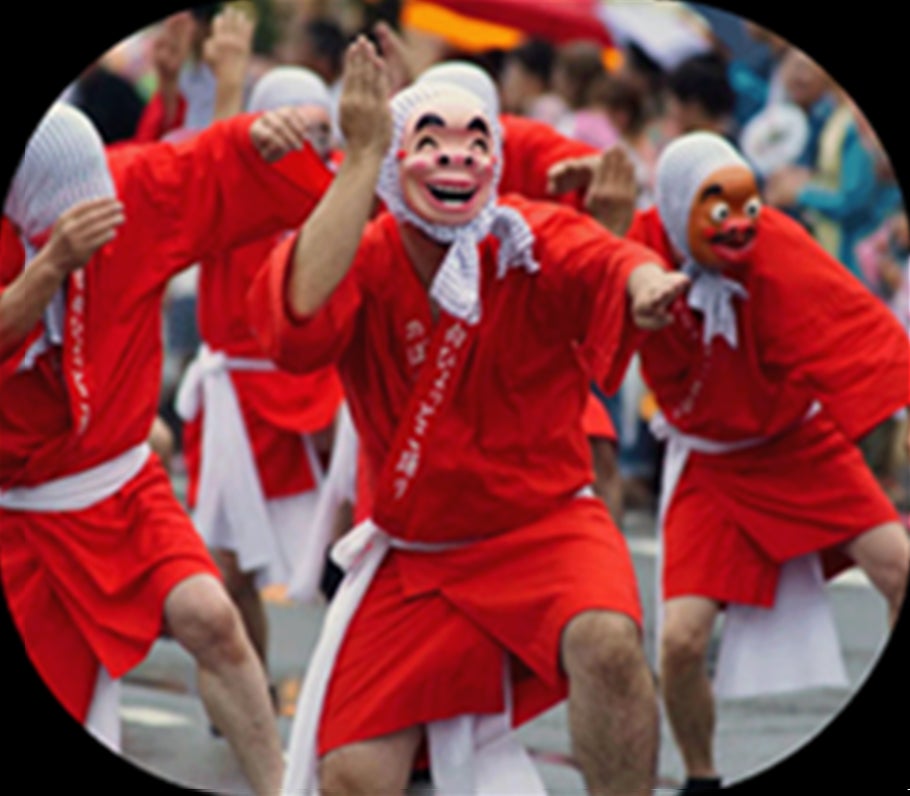 ひょっとこ踊りは、昔は、初午(はつうま)の日に踊られていたそうですが、現在は、豊作を祝う踊りとして、また商売繫盛を願う踊りとして色々な機会に踊られています。ひょっとこが人生の道を違わないように手招きをして追いかけるように踊りだします。