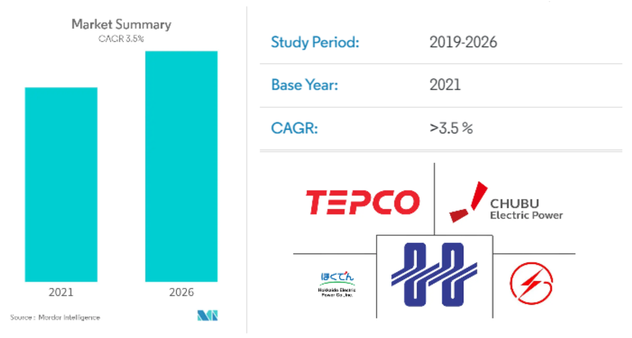 日本の電力市場は、2020年から2026年の間に約3.5%のCAGRで成長すると予測されます。