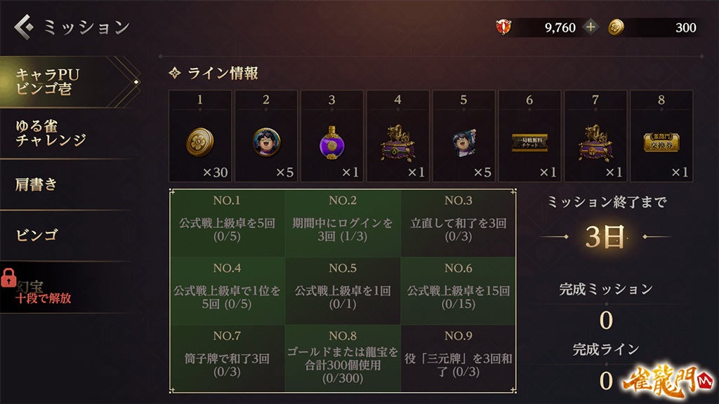 『雀龍門M』「ビンゴミッションイベント」で毎週ミッションをクリアして豪華報酬をゲットしよう!さらに抽選でAmazonギフトカードが当たるキャンペーンも開催