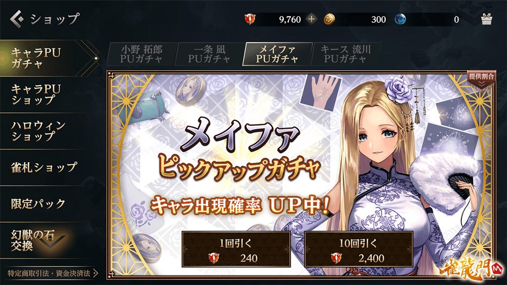 ピックアップガチャは、ピックアップされたキャラクターの関連アイテムが出現し、その中でアバター出現確率がUPされています。さらに通常価格よりお買い得です。